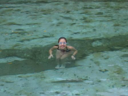 After being interrupted by the kayak, I got back into my groove and started thinking that there’s nothing in there besides the water & water life, Bruce, Lynne, and I. I was concentrating on sighting the whole time, but I didn’t know what to sight for. So, I started sighting for Lynne’s glo bracelets and would try to head her way. I did a great job at it for a while, even managed to crash into Lynne 2 or 3 times. Then, I lost Lynne. No surprise! And, w/my excellent navigation skills (As you can imagine, they get only better in the water!), I managed to do a U-turn without even knowing it. Bruce came after me, stopped me, and informed me I was going the wrong way. I responded, “Are you sure?” Of course he was! So, I start looking for Lynne again. My fins, paddles, and little engine finally manage to reel her in. I was tired, and she seemed to be swimming faster & faster & faster. I stayed strong & patient, figuring she’d get to her biggest gear pretty soon. The final, big gear never came! Is it possible? I kept repeating in my head, “Lynne, you’re a MANIAC! Forget ‘Leader of the Crazies!’ MANIAC; the woman’s a MANIAC! Cool!” That, pretty much, sums what was in my head forever. Then, I hit a current. It was swallowing me, and I couldn’t get out. I couldn’t stop because Miss Maniac was in front pushing & pushing the pace. I thought she was out to give me a really good workout. It wasn’t until we came out of the water that I realized she was holding a lightning-fast pace to stay warm. I kept asking Bruce about 2 times every 30 seconds, “Bruce, are we in a current? Where’s Lynne? Can you feel the current it in the kayak? Did I loose Lynne?” I wanted the current to leave me alone! When we turned around, I figured, “Great, I get to swim downstream now!” No! The current was there again. At that point, I totally chilled out! I worked on as much as I could—taking up to 9 strokes before coming up for air, quick arm turnover without sacrificing efficiency, keeping my head & chest pressed down, rotating through my hips, you name it!!! I was pretending I had an imaginary deck around me w/my coaches Andrea & Jamie standing & watching. I figured there was nothing I could do about “the current” or Lynne’s maniac pace!